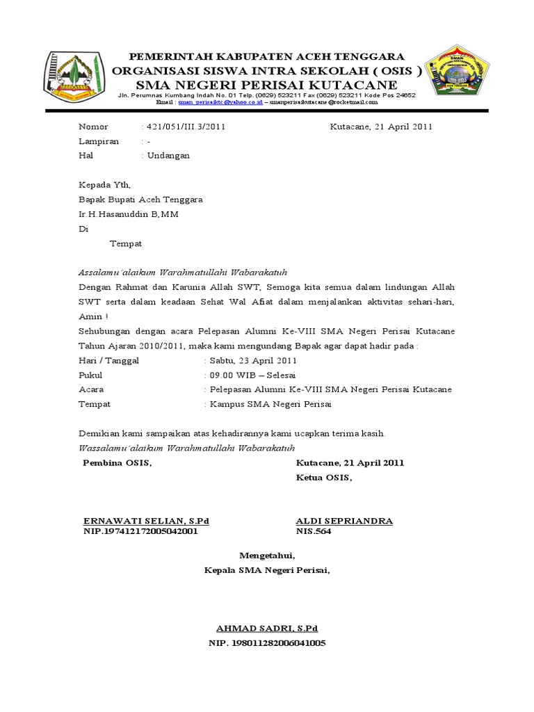 Ya, surat dinas merupakan surat yang dibuat oleh instansi resmi yang berguna untuk berbagai kepentingan tertentu. Osis man darul falah jl.pilang bangu, sepat, masaran sragen tlp. Karena undangan rapat osis merupakan salah satu surat resmi, anda tentu saja harus mengikuti beberapa kaidah dalam pembuatan surat resmi. Surat undangan adalah surat yang banyak digunakan oleh instansi maupun keperluan lain. Osis sma negeri 01 malang jl.