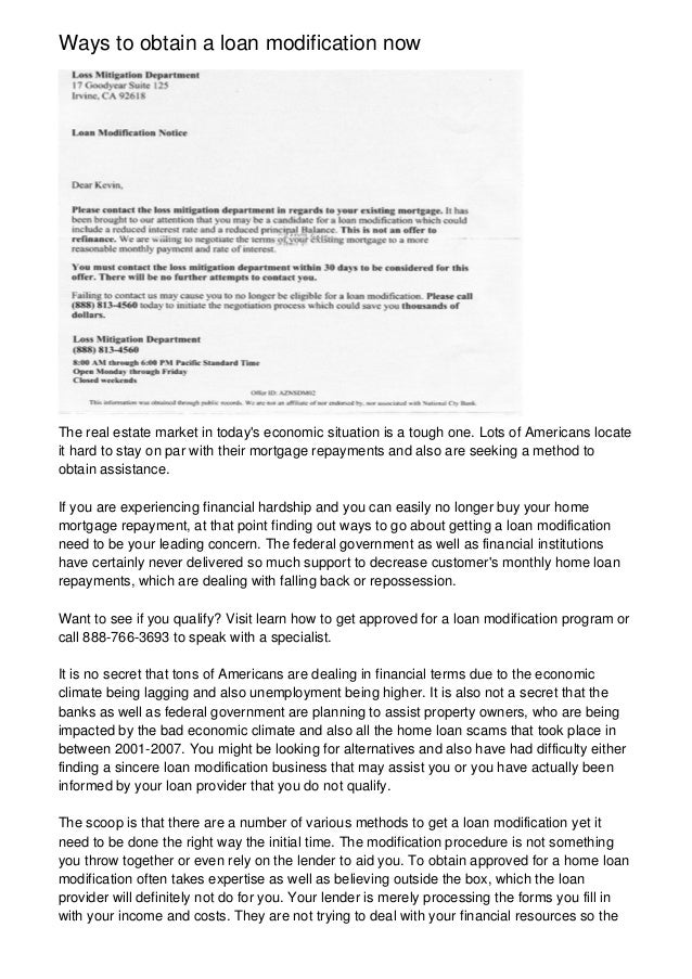 A loan modification is when the mortgage lender restructures your mortgage loan where the rates and terms are restructured to make your homeowners who had a loan modification in the past often get conflicting answers when they consult with a loan officer about qualifying for fha loans after loan. Preparation before calling your mortgage lender v. What is a loan modification and how does it differ from refinancing? Both a loan modification and a loan refinance can potentially help you if you're having difficulty keeping up with your mortgage payments. What the mortgage company deems as a major financial crisis, or any additional criteria that the mortgage borrower must meet, can.